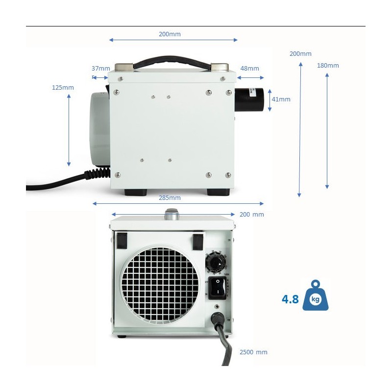 De Ecor DryFan 8 PRO kan dagelijks (24 uur/dag), 365 dagen per jaar de lucht ontvochtigen. Deze professionele luchtontvochtiger is krachtig en kan zelfs voor industriële doeleinden worden ingezet. Het apparaat is ontworpen om bijna overal te gebruiken, in iedere stand, zelfs ondersteboven. De compacte Zeoliet luchtontvochtiger wordt veelal geïnstalleerd tegen een wand of aan het plafond, maar kan ook losstaand worden gebruikt. Deze luchtontvochtiger heeft voetsteunen die geschikt zijn voor montage in een vaste opstelling. Het apparaat weegt slechts 5 kg en is IP24 uitgevoerd. Enkel het luchtfilter periodiek reinigen is voldoende voor volledig automatische luchtontvochtiging.