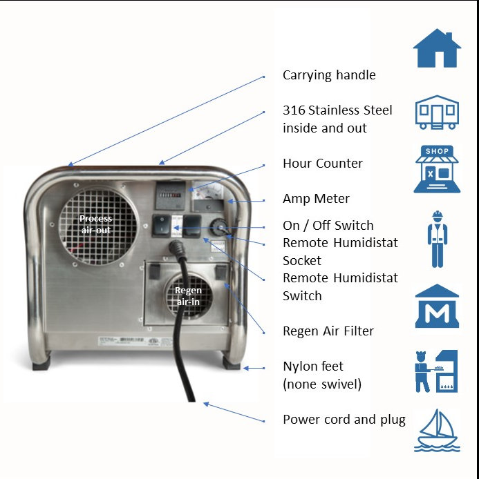 Specificaties: Ecor DryFan DH3500 - Adsorptiedroger (INOX RVS)