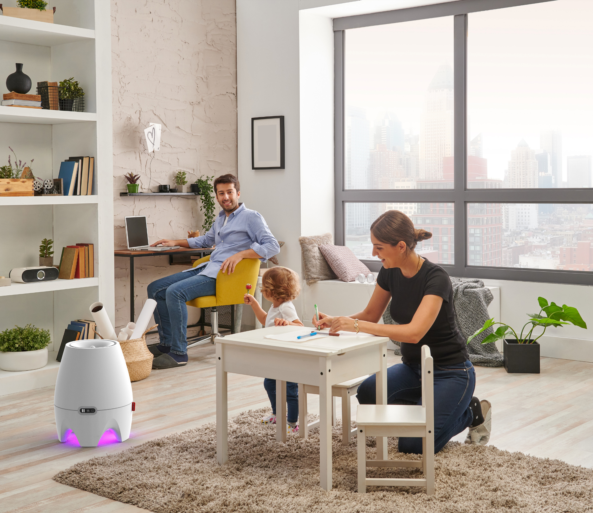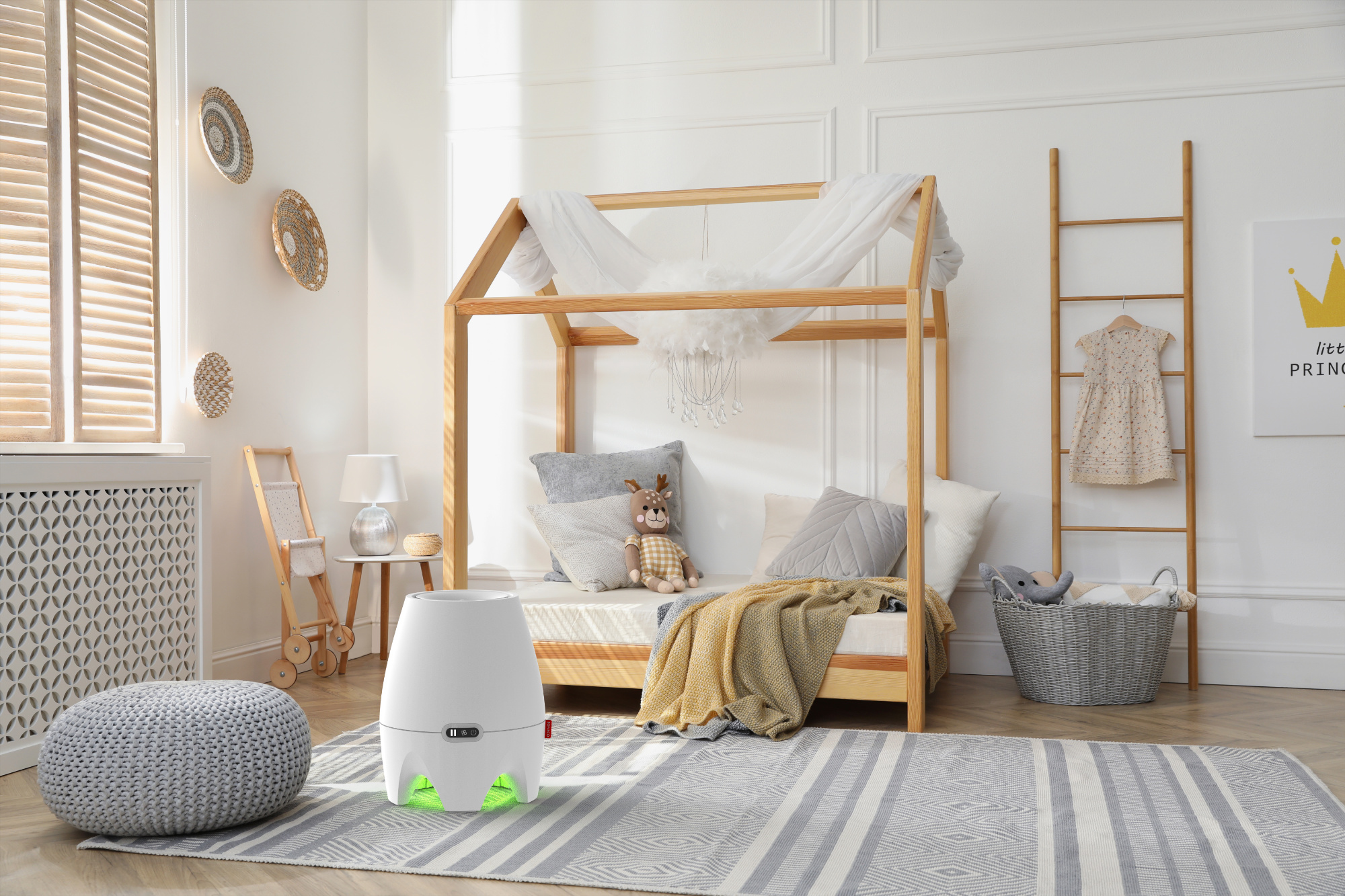 Met een tiptoets kunt u de ventilator van de luchtbevochtiger in drie standen schakelen. De lucht wordt tegelijkertijd gewassen, stof en geuren worden er aan onttrokken. De Ionic Silver Stick (ISS) houdt de watertank van de bevochtiger bacterievrij.