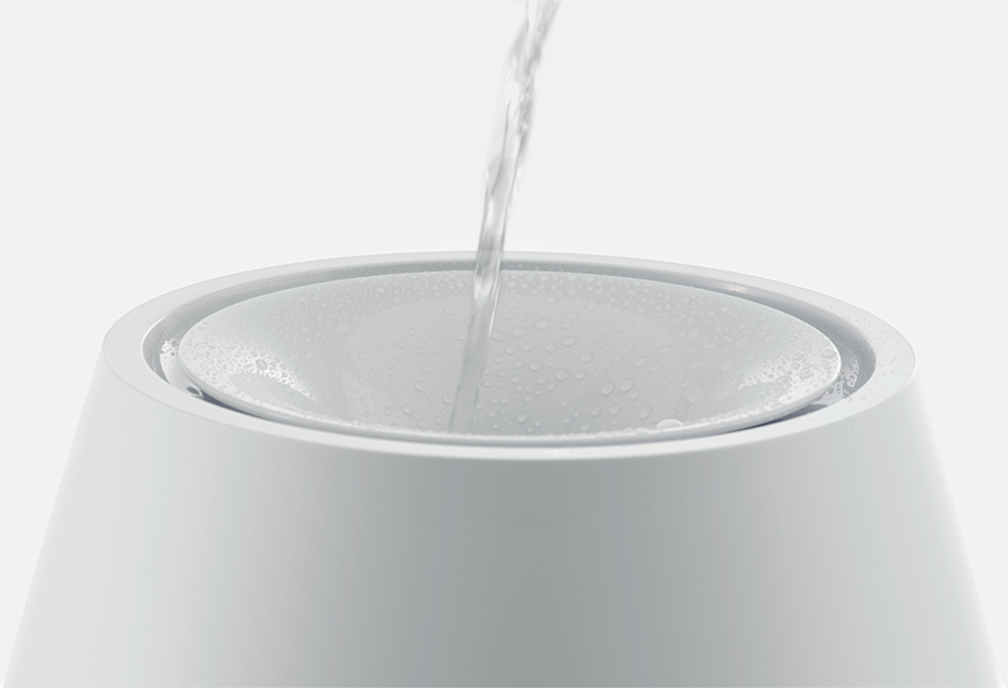 Na de luchtbevochtiger te hebben aangezet, moet het apparaat aan de bovenzijde met een gieter worden gevuld. De werking van deze Boneco E200 berust op het zogenaamde koudverdamper-principe. Een hiervoor speciaal bestemd luchtfilterelement wordt in water gedrenkt. Een ventilator trekt de droge lucht uit de kamer langs de vochtige filtermat waardoor het water op een natuurlijke manier verdampt, totdat een ideale luchtvochtigheid wordt bereikt.