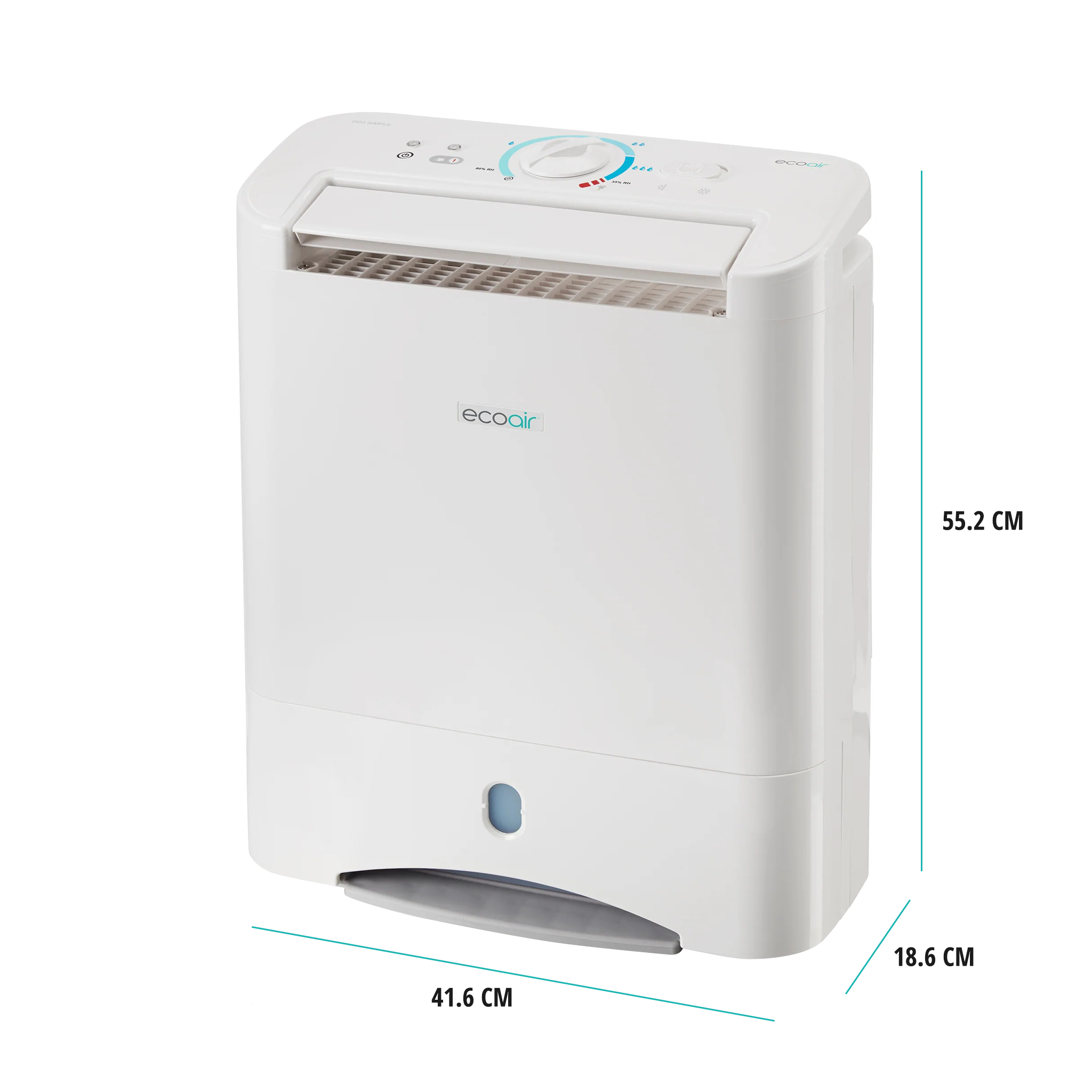 EcoAir DD3 Simple ontvochtiger met draaiknop en antibacterieel zilvernanofilter De DD3 Simple is stil met 45 dBA, licht van gewicht met 8,5 kg en wordt geleverd met een antibacterieel zilveren nanofilter. Gebruik de draaiknop om de gewenste vochtigheidsinstellingen te selecteren en de schuifbalk om de modi Energiebesparing, Turbo en Wasgoed te kiezen. Perfect voor gebruik in de winter omdat hij licht verwarmde lucht afgeeft, wat helpt om de ruimte op te warmen en uw kleding te drogen. Bovendien werkt uw verwarming efficiënter wanneer de lucht droger wordt, waardoor u mogelijk energie bespaart. Krachtige wasfunctie De DD3 Simple is uitgerust met een turbo- en stille wasmodus. Verbeterde E7s-technologie - Energiebesparing Automatische stop wanneer de luchtvochtigheid uw gewenste instelling bereikt. Automatisch inschakelen wanneer de luchtvochtigheid boven de door u gewenste instelling stijgt. Veiligheidsvoorzieningen Kantelbeveiliging 2 minuten vertraagde uitschakeling om af te koelen Uitschakeling bij vol waterreservoir Detectie van verwarmingstemperatuur en uitschakelfunctie Milieuvriendelijk ontwerp Droogmiddelontvochtigers zijn een milieuvriendelijk alternatief voor traditionele ontvochtigers omdat ze geen koelgas gebruiken dat schadelijk kan zijn voor het milieu. Productkenmerken Geen luidruchtige compressor en geen schadelijke gasemissies Vochtverwijdering - 10 liter per dag (20 °C, RH60%) Geschikt voor ruimtes tot 85 m² Laag geluidsniveau bij lage snelheid (45 dBA) Lichtgewicht ontwerp, slechts 8,5 kg 3,5 liter watertank met deksel en draaggreep Reinigbaar en vervangbaar zilveren nanofilter Stroomverbruik: laag 420 W, hoog 670 W Automatische herstartfunctie Anti-kantelbeveiliging Bedrijfstemperatuurbereik: 1~35 ºC