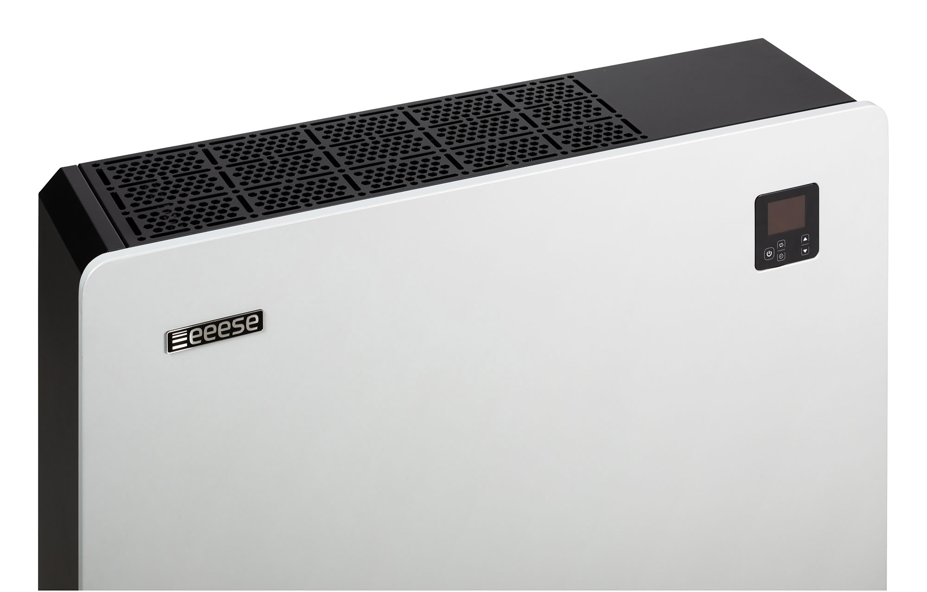 FULL-INVERTER ZWEMBADONTVOCHTIGER Werelds eerste Full Inverter-luchtontvochtiger voor zwembaden. Achter het elegante design van de Eeese Axel Pool 96L Zwembadontvochtiger zit een energie-efficiënte en stille spierbundel van een luchtontvochtiger. De Eeese Axel Pool 96L Zwembadontvochtiger kan ook prima worden gebruikt in kleedkamers, wellnesscentra, in kelders en in alle andere ruimtes tot 200 m². Als eerste Full-Inverter zwembadontvochtiger op de markt maakt de Eeese Axel Pool 96L gebruik van de Full Inverter technologie. De compressor en ventilator hebben een 100% automatische frequentieregeling en de luchtontvochtiger past zich automatisch aan de relatieve vochtigheid in de kamer aan. Eeese Axel Pool 96L is geschikt voor algemene ruimtes én voor binnenzwembaden