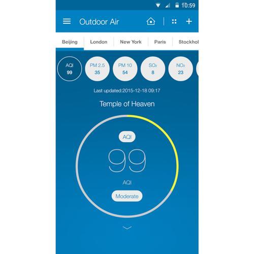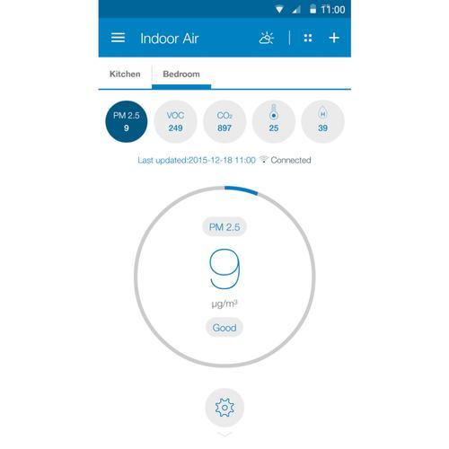 Realtime luchtkwaliteit meten Wat is de kwaliteit van de lucht die je inademt? Met Blueair Aware kun je de luchtkwaliteit binnenshuis meten en controleren. Het luchtcontroleapparaat Blueair Aware meet fijnstof, Vluchtige Organische Stoffen (VOS / VOC's), CO2, temperatuur en vochtigheid in de lucht. Blueair Aware is ontworpen om snel honderden verschillende soorten deeltjes in de binnenlucht te detecteren waaronder PM2.5 en VOC's zoals formaldehyde en benzeen. Plaats Blueair Aware in huis, op kantoor of op een andere werkplek voor het verzamelen van belangrijke luchtkwaliteit informatie. Het meetbereik van fijnstof (PM 0.5) bedraagt 0 tot 500 µg/m3, VOS vanaf 125 tot 1000 PPM en CO2 vanaf 450 tot 5000 PPM waarvan het equivalent gebaseerd is op de VOS-metingen. LED-weergave voor luchtkwaliteit De luchtkwaliteit kan eenvoudig rechtstreeks op de luchtkwaliteitsmeter worden afgelezen. Door middel van led-aanduidingen zie je direct hoe het binnen met de luchtkwaliteit gesteld is. De aanduidingen zijn: uitstekend, goed, gemiddeld, licht vervuild, vervuild en sterk vervuild. Alle meetresultaten en meetwaarden zijn uitvoerig te bekijken via de gratis Blueair Friend App. Blueair Friend App voor alle gegevens over de luchtkwaliteit op je smartphone De Blueair Friend App helpt je schone, gezonde lucht in te ademen door het monitoren van de luchtkwaliteit. De Blueair Friend App geeft je direct informatie over de luchtkwaliteit, de app stuurt realtime updates van de luchtmetingen naar je smartphone. De kwaliteit van de binnenlucht kun je realtime meten, je kunt gegevens (meetwaarden) over een tijdsperiode bekijken, en je kunt zelfs waarschuwingen over een slechte luchtkwaliteit ontvangen op je smartphone. Geschikt voor iPhone, iPad, iPod, Apple Watch en Android. Blueair Aware samen met Blueair WiFi luchtreinigers voor alle luchtkwaliteit informatie en op afstand instelbare reiniging. De Blueair Aware luchtkwaliteitsmeter combineren met één van volgende luchtreinigers en je hebt automatische detectie en automatische reiniging van het binnenklimaat: Blueair Senseplus luchtreiniger Blueair 205 luchtreiniger Blueair 405 luchtreiniger Blueair 505 luchtreiniger Blueair 605 luchtreiniger Je hebt hierdoor volledige controle over de kwaliteit van de binnenlucht. De Blueair Aware luchtkwaliteit meter en de genoemde Blueair luchtreinigers zorgen ervoor dat je binnenshuis altijd schone lucht inademt wanneer je thuiskomt. De Blueair Friend-app stelt je in staat om functies van de luchtreinigers automatisch te bedienen. In- en uitschakeling, ventilatorsnelheid, LED-verlichting, kinderslot, nachtmodus, deze functies zijn te bedienen vanaf elke locatie met een internettoegang. De luchtkwaliteit meten en regelen in meerdere ruimtes in huis of op de werkplek Je kunt zoveel Blueair Aware luchtkwaliteitsmeters en Blueair luchtreinigers met WiFi verbinden als je wilt. Selecteer 'Add device' (Apparaat toevoegen) en volg de instructies in de Blueair Friend App. Je kunt je apparaat een persoonlijke naam geven zodat je de verschillende apparaten gemakkelijk kunt herkennen in de app. Download Blueair Friend App. Minimale vereisten voor iPhones: iOS 8 en Android 4.1.