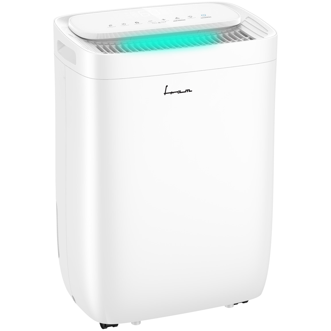 Fram FDU-M12 is een veelzijdige 2-in-1 luchtontvochtiger en luchtreiniger, ontworpen om de luchtkwaliteit binnenshuis te verbeteren en optimale vochtigheidsniveaus te handhaven. Met zijn capaciteit van 12 liter per dag behoudt de luchtdroger in een gemiddelde woonkamer of slaapkamer de ideale luchtvochtigheid. Fram FDU-M12 toont de luchtvochtigheid op zijn display, op een kleurenindicator, en in de app.