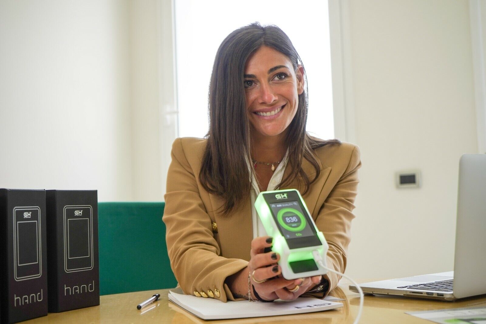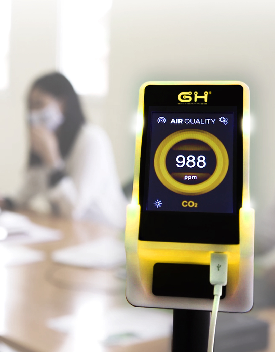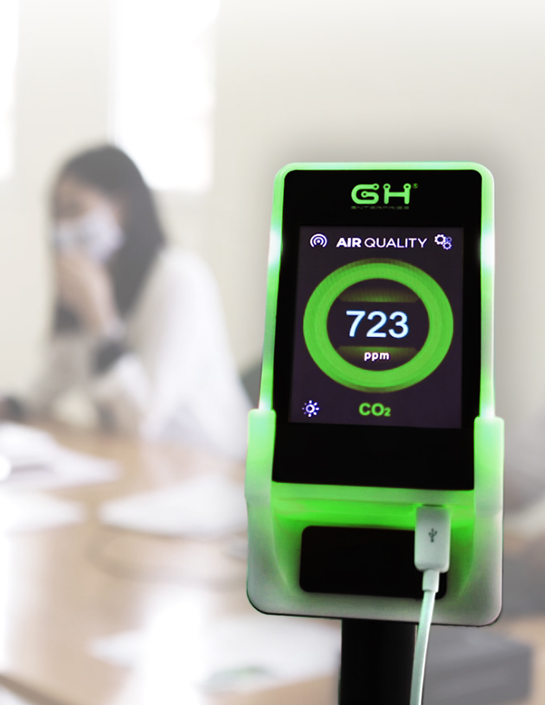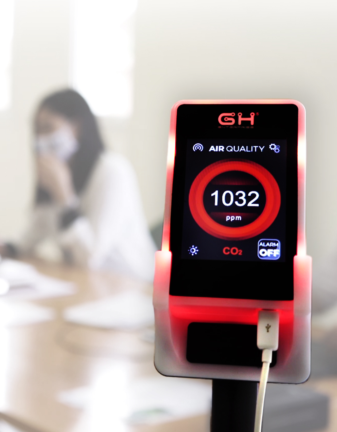 De Hand Air CO2 meter controleert de luchtkwaliteit in een binnenruimte. Met snelheid en precisie wordt de CO2 concentratie gemeten en signaleert het apparaat wanneer de ingestelde grenswaarde overschreden wordt en de lucht ververst dient te worden.