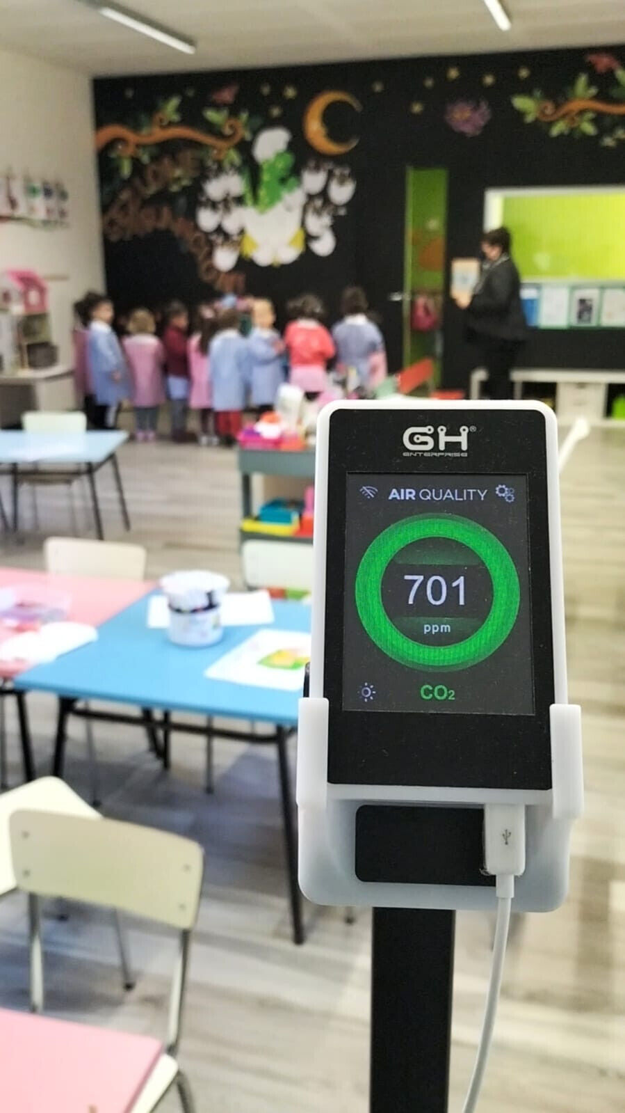 GEZONDHEID: De Hand Air CO2 meter controleert de kwaliteit van de lucht die u inademt. In een ruimte waar mensen wonen en werken neemt de CO2-concentratie toe en dit kan leiden tot een verhoogd risico op besmetting door virussen. De meter geeft precies aan wanneer het tijd is de CO2-concentratie te verlagen. Ook wordt de tijd aangegeven die nodig is om de ingestelde waarde te bereiken. WERKING: De Hand Air CO2 meter signaleert wanneer de CO2-concentratie boven de ingestelde grenswaarde dreigt te komen en het tijd is voor luchtverversing, bijvoorbeeld door een raam te openen. Met een licht- en geluidsalarm geeft het toestel dit aan. Vervolgens wordt aangegeven wanneer het raam weer dicht kan. Geen onnodige energieverspilling én een gezonde lucht! KENMERKEN: Gebruiksklaar Meetbereik 400 tot 5000 ppm Nauwkeurigheid + / - 5 % Touchscreen kleurendisplay Instelbare grenswaardes Dubbel geluids- en lichtalarm Aan te sluiten op WI-FI netwerk Op afstand controleerbaar