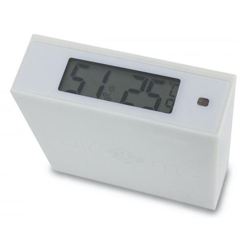De luchtvochtigheid en temperatuur kunt u aflezen op het duidelijk display van Air & Me Dourdou. Het LED systeem zal regelmatig oplichten om u van informatie te voorzien. Of u de Air & Me thermo-hygrometer Dourdou nu plaatst op een meubelstuk of hem met zijn magneten vasthecht op uw koelkast, de Dourdou zal u steeds op de hoogte houden van de relatieve luchtvochtigheid en ruimtetemperatuur. Zijn LED-verlichting verandert van kleur om u te informeren over de kwaliteit van de luchtvochtigheid in huis: BLAUW: de lucht is te droog en de luchtvochtigheid ligt tussen 10 en 39% GROEN: de luchtvochtigheid is ideaal, tussen 40 en 60% ROOD: de lucht is te vochtig en de luchtvochtigheid ligt tussen 61 en 99% U kunt de intensiteit van de leds eenvoudig verminderen door de nachtmodus van de luchtvochtigheidsmeter te activeren. En als de leds overbodig zijn, kunt u ze helemaal uitschakelen. Kenmerken thermo-hygrometer Air & Me Dourdou Kleur: Wit Aantal batterijen: Twee Batterijen meegeleverd Batterijtype: AA Voltage: 3 Volt