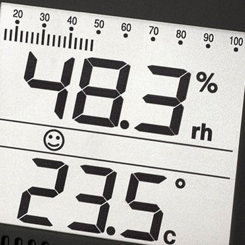 Deze hygrometer en thermometer is zeer nauwkeurig, temperatuur: +/- 0,1°C, luchtvochtigheid +/- 1% en is geschikt voor gebruik binnenshuis. De gemeten hoogste waarden en laagste waarden van luchtvochtigheid en temperatuur worden vastgelegd. De relatieve vochtigheid wordt eveneens weergegeven in de vorm van een horizontale indicator. 'smiley'-symbolen geven het comfort van de temperatuur en relatieve luchtvochtigheid aan. Deze hygrometer kan als tafelmodel of als wandmodel worden gebruikt. De hygrometer wordt exclusief batterijen 2 * AAA (1,5 V) geleverd.