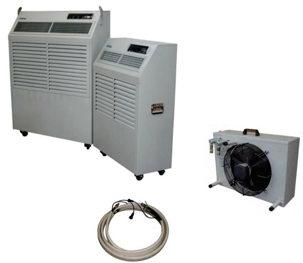 Fral FACSW92 is een grote watergekoelde airco die maximale flexibiliteit biedt. De verplaatsbare airconditioning unit levert direct mobiele koeling in de ruimte waar dat nodig is. De professionele mobiele airco bezit een extra hoog koelvermogen van 27.0 KW. Toepassingen zijn onder andere kantoren, industriële ruimtes, computerruimtes, serverruimtes en openbare ruimtes. De Fral FACSW92 heeft twee buitenunits die door middel van koelleidingen worden aangesloten. Mobiele airconditioning, krachtig en stil tegelijk. Het twee buitendelen van de mobiele split airco staan buiten de te koelen ruimte waardoor de verrijdbare binnenunit een stille werking heeft. Fral FACSW92 heeft een hoge capaciteit en een hoog koelrendement dankzij waterkoeling en zijn split opstelling. Waar snel krachtige koeling nodig is, heeft u met de verplaatsbare Fral FACSW91 de perfecte oplossing in huis. U hoeft alleen alle units op de gewenste plaats te zetten, leidingen aankoppelen, vullen met water en de airconditioning inschakelen. Met een mobiele split airconditioner als deze Fral FACSW92 in eigen beheer, beschikt u altijd over de mogelijkheid een ruimte krachtig te koelen. Fral FACSW92 is zeer stevig uitgevoerd waardoor hij in tal van ruimtes te plaatsen is. Zelfs onder zware omstandigheden levert de airconditioner uitstekende prestaties. De industrie airco heeft een onderhoudsarme werking, mede door aanwezigheid van een functie voor automatisch ontdooien. Fral FACSW92 houdt hierdoor zijn goede prestaties zelf in stand. Belangrijke kenmerken van mobiele airconditioning Fral FACSW92 zijn: Watergekoelde airconditioning. Twee buitenunits Frame en omkasting van gegalvaniseerd staal met epoxy verf. Compressor gemonteerd op dempers. Koelcircuit van koper en aluminium. Geïntegreerde condens opvoerpomp. Drie Ventilatiestanden. De Hot Gas Defrost ontdooi-inrichting voorkomt ijsvorming volledig automatisch. Kan tot 10 graden Celsius koelen. Afwasbaar luchtfilter. De externe unit kan tot op 30 meter afstand worden geplaatst. Ideaal voor grote kantoren, serverruimten, productieruimten, laboratoria, werkplaatsen en evenementen. De Fral FACSW92 wordt exclusief koelleidingen geleverd. Koelleidingen beschikbaar in 5, 10, 20 en 30 meter. Deze koelleidingen dienen apart meebesteld te worden. Mobiele split airco unit Fral FACSW92 is direct inzetbaar, ook bij storingen en calamiteiten.