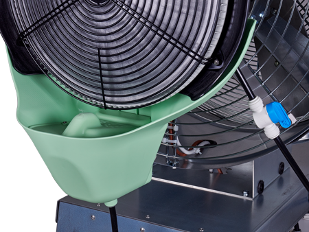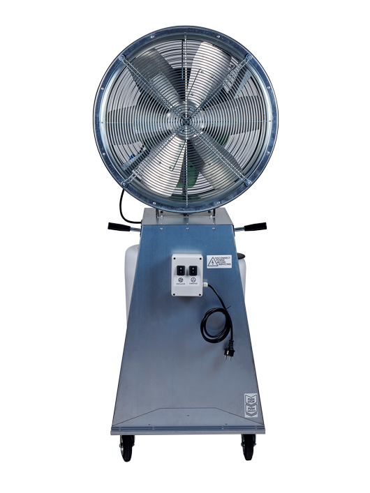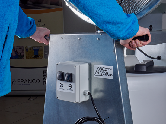 Professionele luchtbevochtiger Franco UF26 is een verrijdbare bevochtiger en koeler die breed inzetbaar is. Deze bevochtiger wordt in grote ruimtes ingezet vanwege zijn hoge bevochtigingscapaciteit tot 960 liter per dag en zijn hoge ventilatiecapaciteit. Mobiele luchtbevochtiger Franco UF26 brengt door verneveling van water tevens verkoeling (Adiabatische koeling). Industriële luchtbevochtiger Franco UF26 geeft een hoge luchtverplaatsing om een grote oppervlakte te bevochtigen of te koelen. Luchtverplaatsing: 9.276 m3 / uur