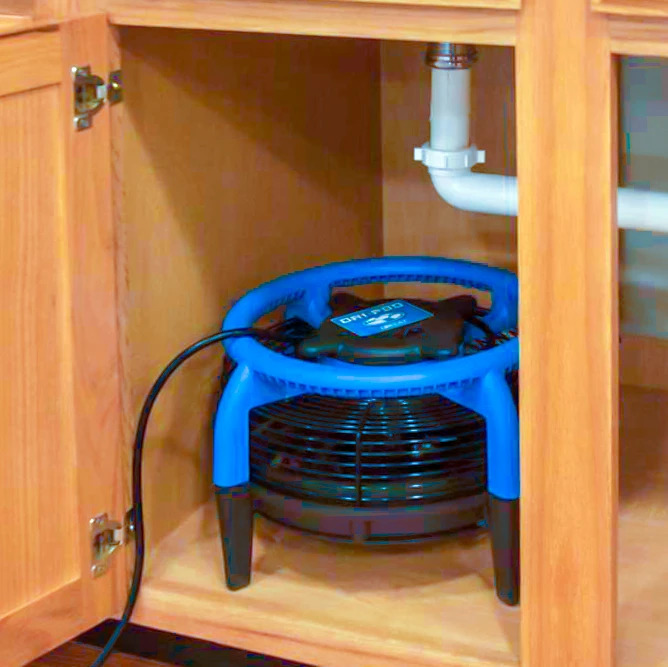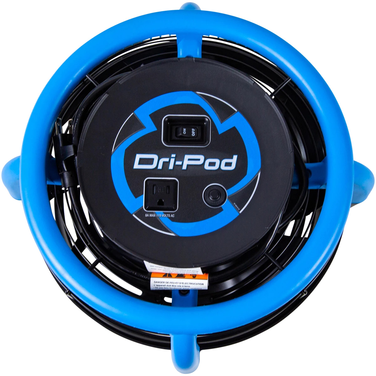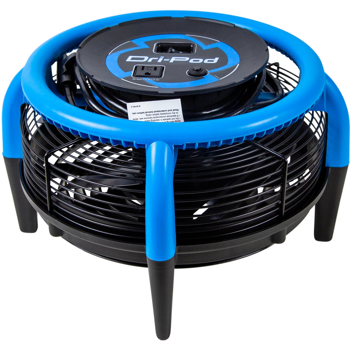 De mobiele vloerdroger DriEaz DriPod met een 360° luchtuitgang grill. Dankzij dit ontwerp trekt de DriEaz DriPod lucht van bovenaf en leidt deze over de hele vloer in een gebied van maximaal 3 meter breed. Plaats de DriEaz DriPod 360° mobiele vloerdroger eenvoudig in het midden van een kamer en droog tapijt, tegels, vinyl of hardhouten vloeren sneller dan ooit.