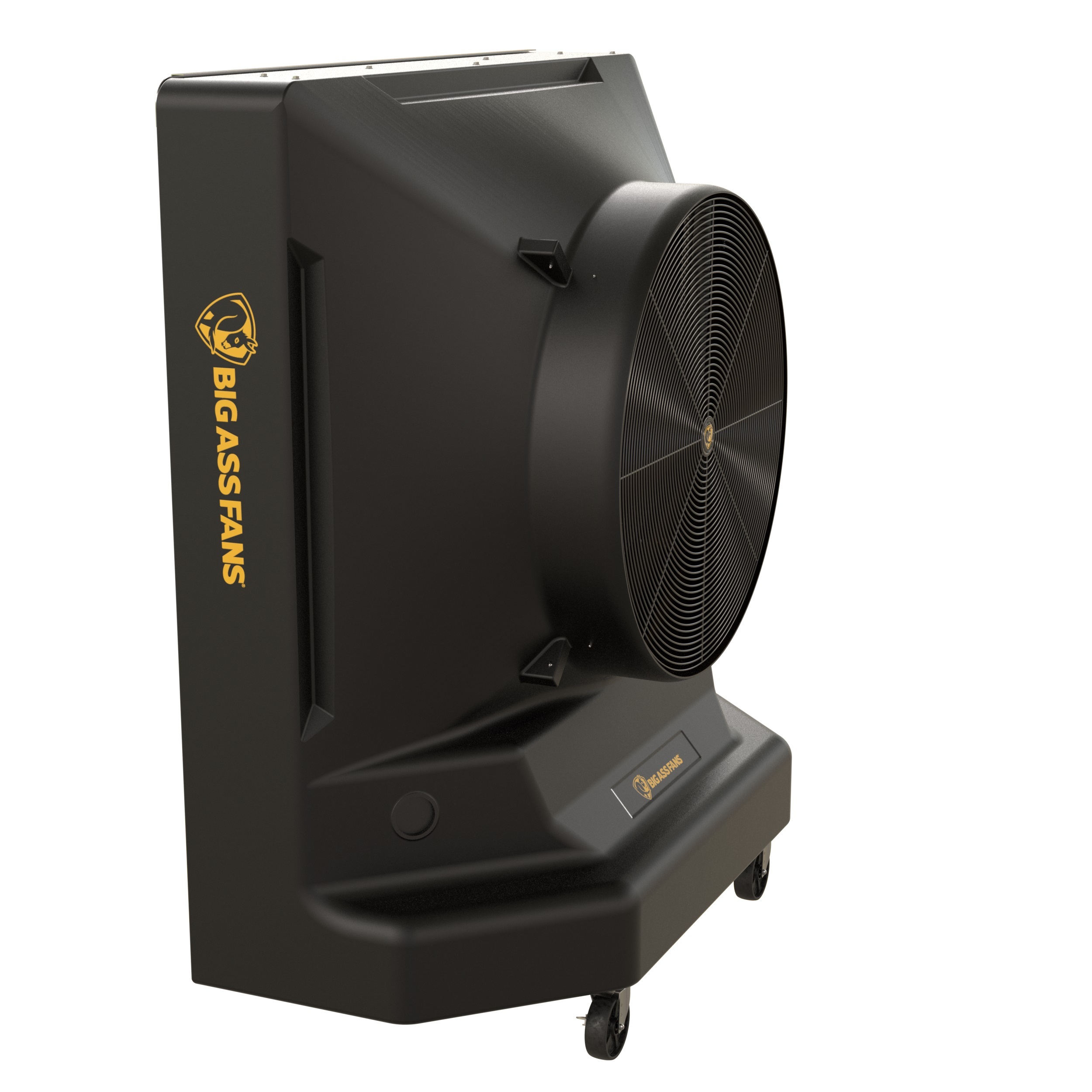 Mobiele luchtkoeler voor efficiënt en krachtig koelen. Geschikt voor een ruimte tot 350 m². De werking van de Big Ass Fans Cold Front 400 luchtkoeler is eenvoudig. Vullen met water, stekker insteken, aanzetten en u heeft direct koeling op elke locatie. De Big Ass Fans Cold Front 400 heeft een watertank inhoud van 174 liter. Geschikt voor zowel binnen- als buitengebruik. De verrijdbare luchtkoeler heeft een stevige roto-moulded kunststof omkasting en kan daarom tegen een stootje. Roestbestendig en gemaakt voor intensief gebruik! Vullen met water door het bevestigen van een standaard slang op de slang aansluiting. Het waterniveau wordt geregeld door een interne vlotter. Wanneer het waterniveau te hoog is, wordt de watertoevoer automatisch afgesloten. Wanneer het waterniveau te laag is, schakelt de pomp automatisch uit zodat deze optimaal beschermd blijft. Dankzij de stevige industriële wielen is de Big Ass Fans Cold Front 400 makkelijk te verplaatsen en geeft de mobiele luchtkoeler u direct verkoeling daar waar nodig. Kenmerken: Sterke roto-moulded behuizing, UV bestendig en roestvrij. Het bevochtigingsmedium is met hars behandeld voor extra sterkte en ter voorkoming van algengroei. High Duty ventilator, 3-bladig, 90 cm doorsnee. Snelheid variabel instelbaar van 10.860 m3/uur tot 16.500 m3/uur. Onderhoudsvrije circulatiepomp. Waterreservoir van 174 liter voor extra lang, onafgebroken koelen. Automatische uitschakeling bij een laag waterniveau. Eenvoudig water vullen met standaard slang of watertank. Robuuste wielen voor eenvoudig verplaatsen (met rem). Afvoerpunt voor water verwijderen en spoelen. Onderhoudsvrije, betrouwbare werking. Stille werking. Eco friendly, water als koelmiddel. Waar verzorgen Big Ass fans luchtkoelers optimale verkoeling? Magazijnen Fabrieken Werkplaatsen en garages Defensie Zware industrie en offshore Evenementen binnen én buiten Sporthallen en sportvelden Hangars Kassen Stallen Agro-sector Restaurants en terrassen Patio's