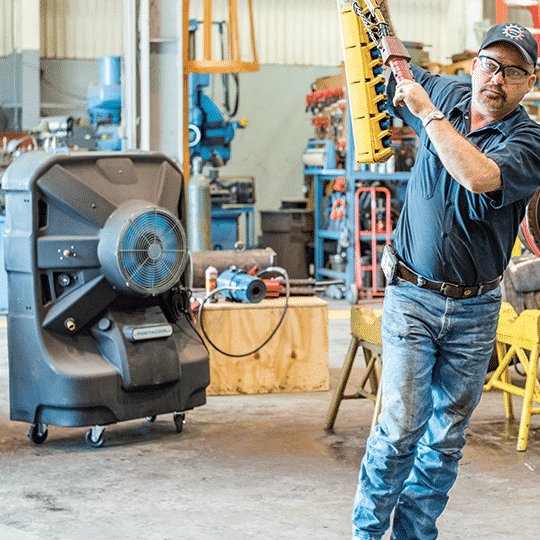 Luchtkoeler Portacool Jetstream 240 geeft koeling waar het nodig is. Geen vaste installatie, geen luchtslangen, direct koelen nadat hij met water gevuld is. Portacool Jetstream 240 is een mobiele aircooler voor bedrijven, loodsen, sportfaciliteiten en buitenruimtes en is geschikt voor koeling in ruimtes tot 105 m². Portacool luchtkoelers zijn bijzonder efficiënt met energie! Een adiabatische koeler verzorgt koeling van de omgevingslucht met water. Jetstream 240 heeft een watertank van 189 liter en een maximaal waterverbruik tot 32 liter/uur, hij schakelt zichzelf automatisch uit als de tank bijna leeg is. Gemaakt voor de industrie en soortgelijke toepassingen in veeleisende omgevingen. Portacool Jetstream 240 heeft een sterke omkasting, stevige zwenkwielen en vraagt weinig onderhoud. De Jetstream 240 past in kleine ruimtes tot 104 m2. Met waterpeil weergave, droogloop bescherming en regelbare ventilatorsnelheid. Wie milieuvriendelijk wil koelen, kiest voor een Portacool aircooler. Het energieverbruik is laag, het koelmiddel is water. Direct verplaatsbaar dus de mogelijkheden zijn eindeloos!