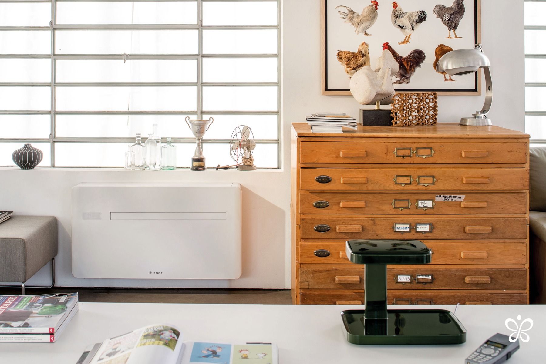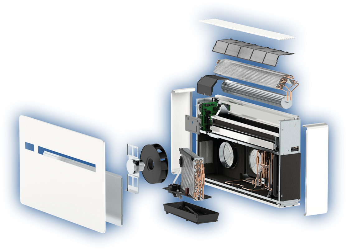 Monoblock airco Innova 2.0 12HP ELEC Inverter: niet pretentieus, één met de ruimte! Monoblock airconditioner en warmtepomp Innova 2.0 12HP ELEC Inverter is bijzonder slank. Deze krachtige airco zonder buitenunit is slechts 16.5 cm diep. Door zijn geringe diepte hangt hij strak tegen de wand zodat hij niet opvalt. De monoblock airco is uitgerust met een 1 kW elektrische heater waardoor hij ook bij zeer lage temperaturen optimaal kan verwarmen. Innova 2.0 12HP ELEC Inverter koelt in de zomer en kan verwarmen tijdens koude wintermaanden. Plaats de monoblock airco zelf en bespaar installatiekosten. Een Innova monoblock airco is een onopvallende airco unit, de binnenruimte behoudt de luxe, exclusieve uitstraling.