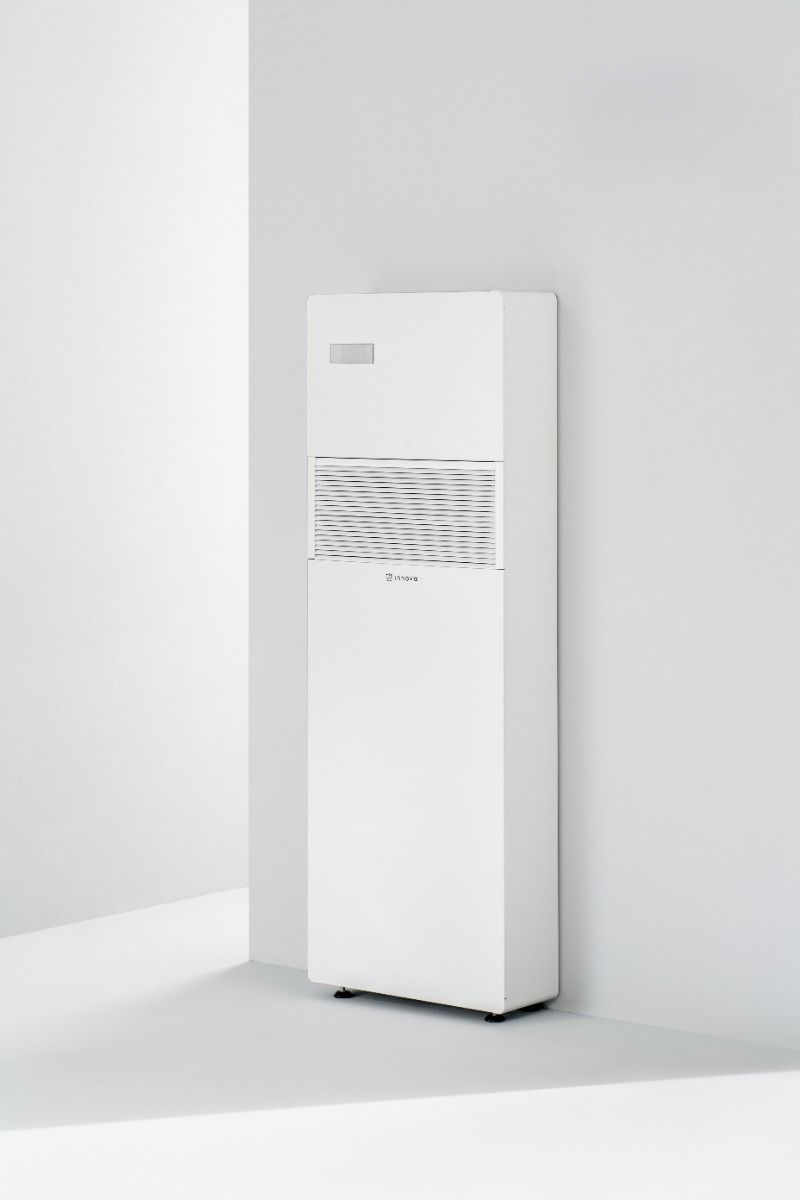 De Innova 2.0 15HP ELEC Vertical Inverter Monoblock is een krachtige en energiezuinige airco en warmtepomp zonder buitenunit. Dankzij het slanke verticale ontwerp past deze unit perfect in smalle wandruimtes zoals tussen ramen of in nissen. Het systeem combineert koelen, verwarmen en ontvochtigen in één compact toestel en werkt met efficiënte DC inverter technologie. De 2026 ELEC uitvoering beschikt bovendien over 0,9 kW elektrische bijverwarming voor extra verwarmingsvermogen op koudere dagen. Met de Innova app en meegeleverde afstandsbediening bedien je het systeem eenvoudig op afstand, terwijl het lage geluidsniveau vanaf 29 dB(A) zorgt voor een comfortabele en stille werking.