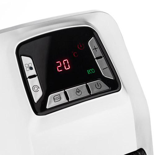 Elektrische en keramische kachel met ventilator Argoclima Fusion heeft een uitgebreid bedieningspaneel en vele instelmogelijkheden. Zijn krachtige en intelligente technologie zorgt voor efficiënte verwarming. De keramische verwarming is beveiligd tegen omvallen. Geschikt voor een ruimte tot 23 m² (60 m³).