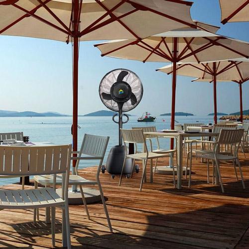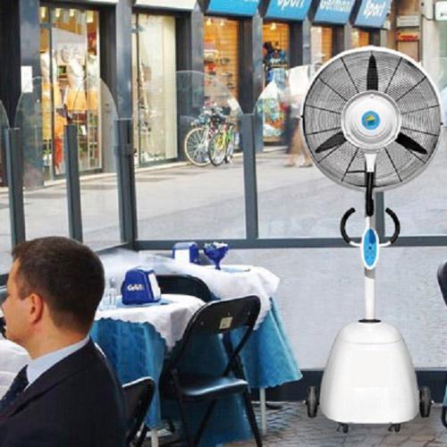De nozzle-vrije mobiele luchtkoeler FRE326N van Star Progetti vestuift water waardoor de temperatuur daalt en een aangename, geventileerde omgeving ontstaat. Luchtkoeler FRE326N maakt gebruik van het natuurlijke principe van waterverstuiving. Koele lucht ontstaat doordat hij miljoenen microdeeltjes koel water afgeeft aan de lucht. Het water verdampt snel waardoor warmte wordt afgevoerd en de temperatuur wordt verlaagd. Het unieke aan de verrijdbare luchtkoeler Star Progetti FRE326N is, dat hij water verstuift zonder gebruik te maken van spuitmonden of nozzle's. Hierdoor worden verstoppingen en daaruit voortvloeiende storingen voorkomen. De snelheid en de output van de mist kan op verschillende niveaus worden aangepast en ingesteld. De Star Progetti FRE326N is uitgerust met een systeem dat oscilleert van 0 tot 72° waardoor het gekoelde, geventileerde gebied wordt vergroot. Het waterreservoir is geïntegreerd in de unit; er is geen externe tank of aansluiting nodig. Toepassingen: Magazijnen, of delen van magazijnen Industriële voorzieningen waar stof aanwezig is Sportfaciliteiten Strandtenten Zwembaden Terras koeling, bijv. in buitenzones van een Bar, Restaurant of Hotel Buiten koeling; buitenzones bij evenementen Mobiele koeling, bijv. onder overkappingen Kenmerken: Geen onderhoud vereist Kalkaanslag is geen probleem omdat het apparaat geen spuitmonden heeft Het elektrische systeem is hermetisch afgesloten zodat hij veilig kan worden gebruikt Mobiel; kan overal worden geplaatst Ventilatiesnelheid instelbaar met drie standen Timer functie De hoeveelheid nevel kan worden aangepast Erg stille luchtkoeler Laag energieverbruik Geen externe watertank nodig Reduceert de temperatuur onmiddellijk, hij creëert direct een comfortabel milieu Geen compressor, dus geen probleem met onderhoud