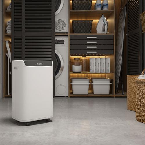 De Olimpia Splendid luchtontvochtiger S1 12P, met een Italiaans design en nieuwe esthetiek is onderscheidend door zijn strakke en eigentijdse stijl. Gemakkelijk te verplaatsen dankzij de ergonomische zijhandgrepen en wielen. De Olimpia Splendid S1 12P luchtdroger heeft een ontvochtigingscapaciteit van 12 liter per dag