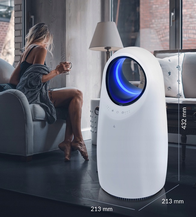 Dankzij zijn cilindrische vorm en zijn drie - in - één filter verwijdert luchtreiniger Blaupunkt Lavender AIRing 99,95% van de vervuilende stoffen uit de lucht. Het 360°- HEPA H13-filter bezit drie reinigingsfasen, het filter bestaat uit een voorfilter, een H13 HEPA-filter en een actief koolfilter. De stijlvolle Blaupunkt luchtreiniger heeft een modern ontwerp en prachtige verlichting.