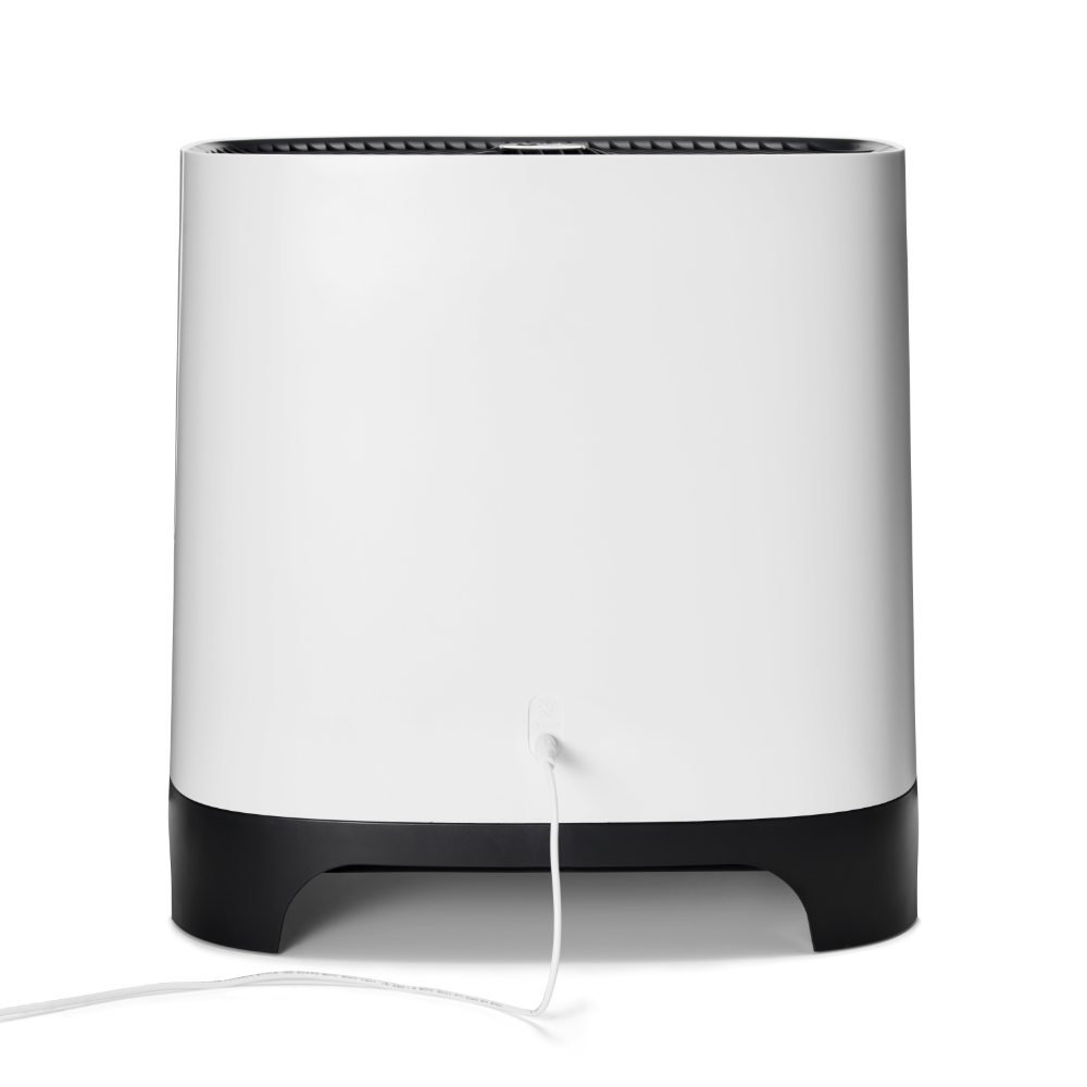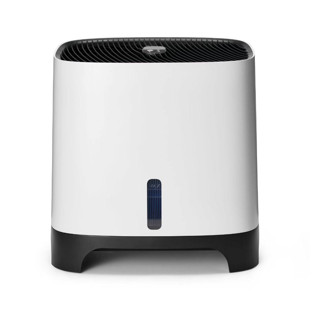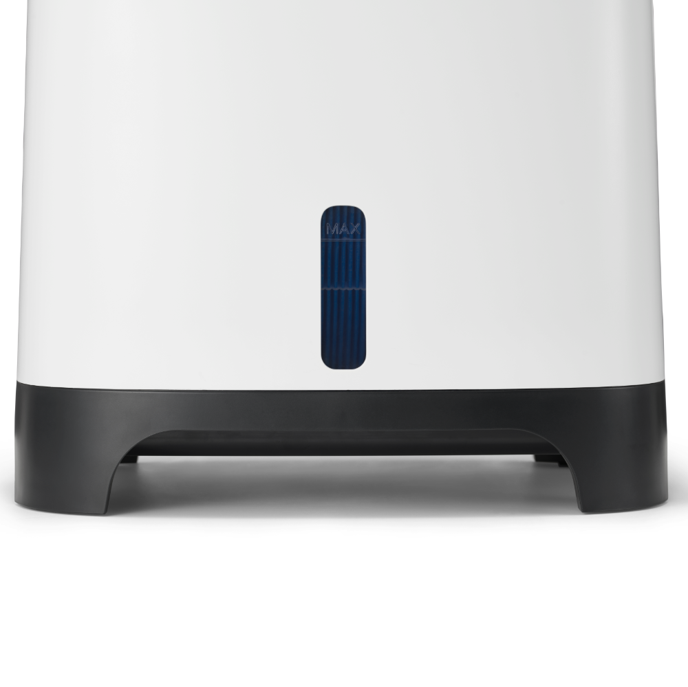 Armin bevochtigt met puur kraanwater Armin 680 bevochtigt de lucht met zuiver water. Vul hem met puur kraanwater, het water heeft geen speciale behandeling nodig. Het toevoegen van een middel voor waterbehandeling is niet nodig. Armin is weinig gevoelig voor kalk in het water. Hij is te gebruiken in gebieden met zacht water en met hard water. De verdampingsbevochtiger verhoogt de vochtigheidsgraad zoals de natuur doet. Een ventilator blaast lucht langs de vochtige verdampingsfilters, dit is te vergelijken met wind die over de zee blaast. Het water in het reservoir van Armin 680 blijft vrij van bacteriën en algen dankzij de Silvertex® watersterilisatiepad, gecombineerd met een antimicrobiële coating op de verdampingsfilters. Dubbele aanzuiging van droge lucht, twee verdampingsfilters Armin 680 verhoogt de luchtvochtigheid snel en gelijkmatig. De bevochtiger is uitgerust met twee verdampingsfilters. Droge lucht wordt aan beide zijde van het apparaat langs een vochtig filter gevoerd. Na het bevochtigen wordt de geconditioneerde lucht in één luchtstroom in de kamer verdeeld. Omdat de bevochtiger de droge lucht aan twee kanten van het apparaat aanzuigt, zal de hele kamer sneller de goede luchtvochtigheid krijgen. Schone lucht, vrij van kalk De dubbele verdampingsfilters in Armin 680 nemen vocht uit het waterreservoir op, en verdelen dit in de droge omgevingslucht. Tijdens dit proces blijven kalkdeeltjes op het filter achter waardoor ze niet in de omgeving terecht komen. Armin veroorzaakt dus geen witte neerslag in de kamer. Armin's verdampingsfilters hebben een lange levensduur. Ze kunnen tot vier keer worden gedraaid, waardoor hun levensduur wordt gemaximaliseerd voordat vervanging nodig is. Silvertex® watersterilisatiepad Armin is de enige Europese luchtbevochtiger die gebruik maakt van de innovatieve watersterilisatiepad Silvertex®, deze is gemaakt van puur zilver en PET. Silvertex® laat zilverionen vrij in het water, waardoor de groei van ziektekiemen en micro-organismen wordt voorkomen. Dit zorgt ervoor dat het water zuiver blijft en voorkomt dat bacteriën zich verspreiden in de lucht die u inademt. Met een levensduur van maximaal een jaar levert Silvertex® langdurige, betrouwbare prestaties voor een gezondere omgeving. Kenmerken van Meaco Armin 680 Ingebouwde hygrostaat Dubbele aanzuiging van droge lucht Weinig onderhoud Makkelijk van bovenaf te vullen Gemakkelijk schoonmaken Vaatwasserbestendige watertank Hoge verdampingssnelheid Laag geluidsniveau Nachtmodus Energiezuinig Silvertex® watersterilisatiepad Antimicrobiële coating op verdampingsfilters Intuïtieve bediening met 3 standen