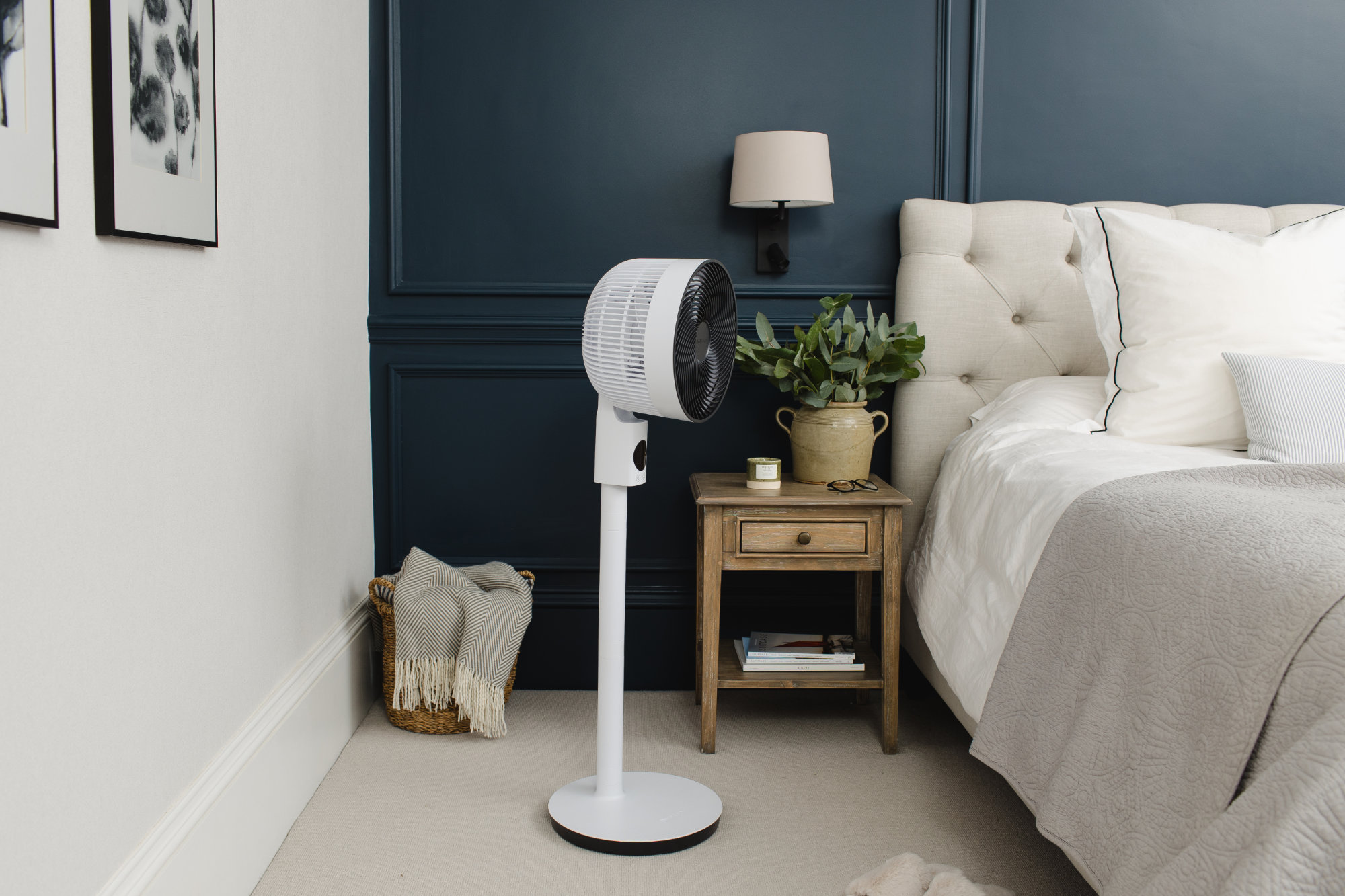 De nieuwste stille staande ventilator van Meaco: Sefte 10 Pedestal! De MeacoFan Sefte 10 Pedestal is een ventilator op voetstuk en is geschikt voor iedere kamer en past overal in huis. Te gebruiken als tafelmodel, vloermodel en staande ventilator. Volledig naar wens aan te passen in hoogte (59 - 84 - 110 cm) en om te toveren van tafelmodel tot sokkel. Op de vloer in de woonkamer of op het nachtkastje in de slaapkamer zorgt de ventilator voor optimale koeling. Ontworpen voor dagelijks gebruik, werkt de MeacoFan Sefte 10 Pedestal stil en efficiënt. Zet hem op één van zijn 12 continu-standen, of kies voor de nachtstand of eco-stand. Borstelloze DC motor, dus ultrastil De zeer efficiënte DC borstelloze motor draait met meer dan 1450 RPM, verbruikt zo min mogelijk energie en produceert zo min mogelijk geluid. Daardoor is de Meaco Sefte 10 Pedestal-ventilator ultrastil vanaf 25 dB. De luchtstroom horizontaal en verticaal met standen instellen Met de Air Beam Precision oscillatieopties heb je zowel overdag als 's nachts volledige controle over de luchtstroom. Stel je Sefte in om te werken binnen smalle, medium of brede zones. De Air Beam Precision biedt zes oscillatiezones (3 stuks horizontaal en 3 stuks verticaal), en is speciaal ontworpen voor gerichte koeling. Glow-in-the-dark afstandsbediening De Glow-in-the-dark afstandsbediening zorgt voor eenvoudige bediening 's nachts en maakt een betere regeling van de ventilatorsnelheid mogelijk. Ook is de ontvanger van de afstandsbediening verplaatst naar net onder de kop, waardoor u de instellingen eenvoudig vanaf elke plek kunt aanpassen. Met de nachtmodus kan alles stil en gedimd gehouden worden terwijl u slaapt. Belangrijkste kenmerken van Meaco Sefte 10 Pedestal: In hoogte verstelbaar Groot display en hoge ontvanger Zeer efficiënte DC borstelloze motor Verborgen draaggreep In het donker oplichtende magnetische afstandsbediening 12 ventilatorsnelheden Horizontale en verticale oscillatie, elk in 3 standen instelbaar Precisie luchtstraal Nachtmodus Eco-Modus Pauzeknop Timer AAN/UIT