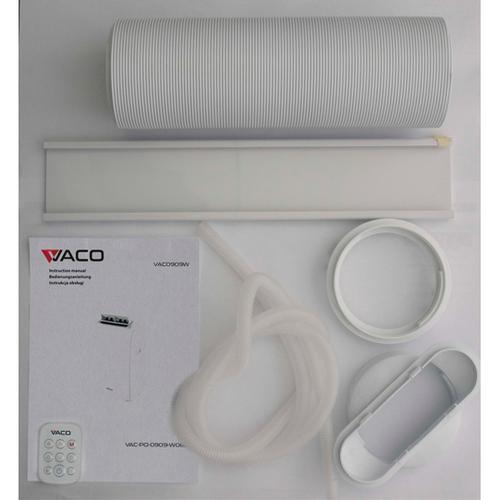 De Vaco VAC09W is een kleine mobiele airconditioning, ontworpen voor kamers waar de ruimte voor het opstellen en aansluiten van een airconditioner beperkt is. Ondanks de kleine afmetingen kenmerkt de mobiele airco zich door een hoog rendement, energieklasse A+, en een laag geluidsniveau. De belangrijkste voordelen: Koelt, verwarmt, droogt en ventileert efficiënt Vermogen past zich automatisch aan voor ruimtes tot 26 m² De airconditioner heeft een laag geluidsniveau in de laagste ventilatorstand Herbruikbare luchtfilters Intelligente nachtmodus Droogt automatisch in de koelmodus (samen met de afvoer van hete lucht) Eenvoudig te bedienen met Wifi Compatible: IOS, Android Spraakbesturing met spraakassistenten: Google Assistant / Google Home en Amazon Alexa / Amazon Echo Werkingsmodus Vaco VAC09W: Koeling: Het gebruik van warmtepomptechnologie zorgt voor een zeer efficiënt gebruik van elke Watt aan energie. Zijn koelcapaciteit van 2,6 kW is voldoende om een ruimte tot 26 m² effectief te koelen, tegelijkertijd is het maximale stroomverbruik slechts 840 Watt. Ontvochtiging: Een zeer nuttige functie bij een verhoogde luchtvochtigheid. Een nieuwbouwhuis, herfstregens, of vochtig weer, deze omstandigheden zorgen ervoor dat de lucht verzadigd is met vocht. De Vaco VAC97W airconditioner kan tot 27 liter condenswater per dag uit de lucht halen. Ventilatie en reiniging: De mobiele airco is uitgerust met een wasbaar filter dat de hoeveelheid stof in de ruimtes vermindert. De ventilator zorgt voor een luchtstroom tot 280 m³ per uur. Verwarming: De Vaco VAC09W mobiele airconditioner heeft een verwarmingsvermogen van 2,3 kW. Hierdoor is het mogelijk om ruimtes efficiënt bij te verwarmen. Standaarduitrusting van de Vaco VAC09W mobiele airconditioner: Luchtafvoerslang Uitlaatmondstuk Raamuitlaat mondstuk Afstandsbediening