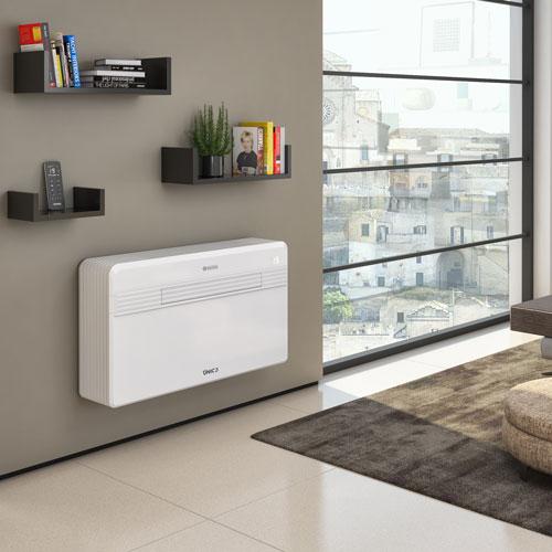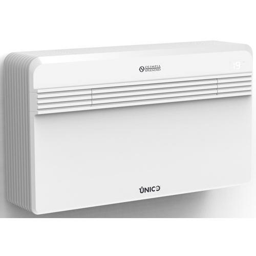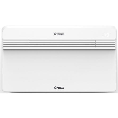 Design monoblock airco, er is geen airco buitenunit nodig. Enkel twee ventilatiegaten en een klein gat voor de condenswaterafvoer! Airco zonder buitenunit Olimpia Splendid Unico Pro Inverter 35 HP EVA kunt u, én mag u zelf monteren. Een monoblock airco met inverter techniek: u bespaart tot 30% energie ten opzichte van traditionele airconditioners. De Inverter airco is geschikt voor een ruimte tot 35 m², de airco kan koelen én verwarmen. Met deze Unico Pro Inverter 35 HP EVA monoblock airco bespaart u op kosten voor aanleg én op energiekosten. Kenmerken van design airco zonder buitenunit Olimpia Splendid Unico Inverter 35 HP EVA: Airconditioning eenvoudig zelf installeren. Warmtepomp airco voor koelen en bijverwarmen. Koelvermogen 3.4 kW. Vermogen verwarming: 3.2 kW. Inverter airco: energiebesparing tot 30% door Inverter techniek. Airco zonder buitenunit, dus eenvoudige montage: Unico Pro Inverter 35 HP EVA, in een korte tijd installatie van uw airco. Installatie vanuit de binnenruimte, ventilatieroosters vanuit binnen te plaatsen. Installatie zowel onder als boven aan een wand mogelijk. Overzichtelijke afstandsbediening. Airco met verwarming, ondersteuning van de hoofdverwarming in de ruimte. Energieklasse A voor koelen én A voor verwarmen. Grote luchtuitblaas voor gelijkmatige luchtstroom in de gehele ruimte. Airco zonder slang, de monoblock airco heeft rechtstreeks een doorvoer door de muur. Diameter van de twee gaten in de wand: Ø 162 of Ø 202 mm. Let op: De standaard meegeleverde luchtroosters hebben een maatvoering van Ø 202 mm. Een klein gat in de wand voor de condenswaterafvoer Ontvochtigingscapaciteit: 1.3 liter/uur = 31.2 liter/dag. (bij 30°C - 90% R.V.) Instelbare ventilator: drie standen. Luchtverplaatsing: 350-390-490 m³/h. De luchtuitblaas is regelbaar. Beveiligingsklasse: IP20. Airconditioning functies ECO stand: de airco zorgt automatisch voor maximale energiebesparing. Energielabel A in cooling mode. Ventilatorstand: alleen ventileren mogelijk. Ontvochtigen stand: alleen ontvochtigen mogelijk. Automatische stand: automatisch koelen of bijverwarmen naar de ingestelde temperatuur. Slaapstand voor stille werking: voor een goede nachtrust neemt koeling geleidelijk af met maximaal twee graden en het geluid wordt gedempt. Warmtepomp: de monoblock airco is uitgerust met verwarming, dus naast koelen ook de mogelijkheid om de ruimte bij te verwarmen naast de hoofdverwarming. 24 uurs timer.