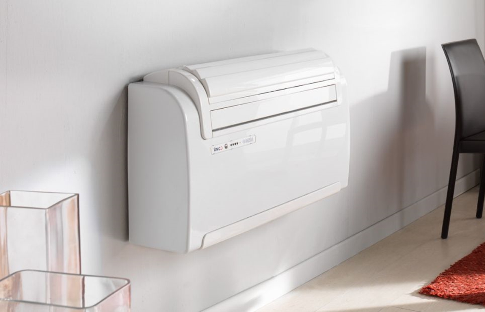 • Airco zonder slang, de monoblock airco heeft rechtstreeks een doorvoer door de muur.