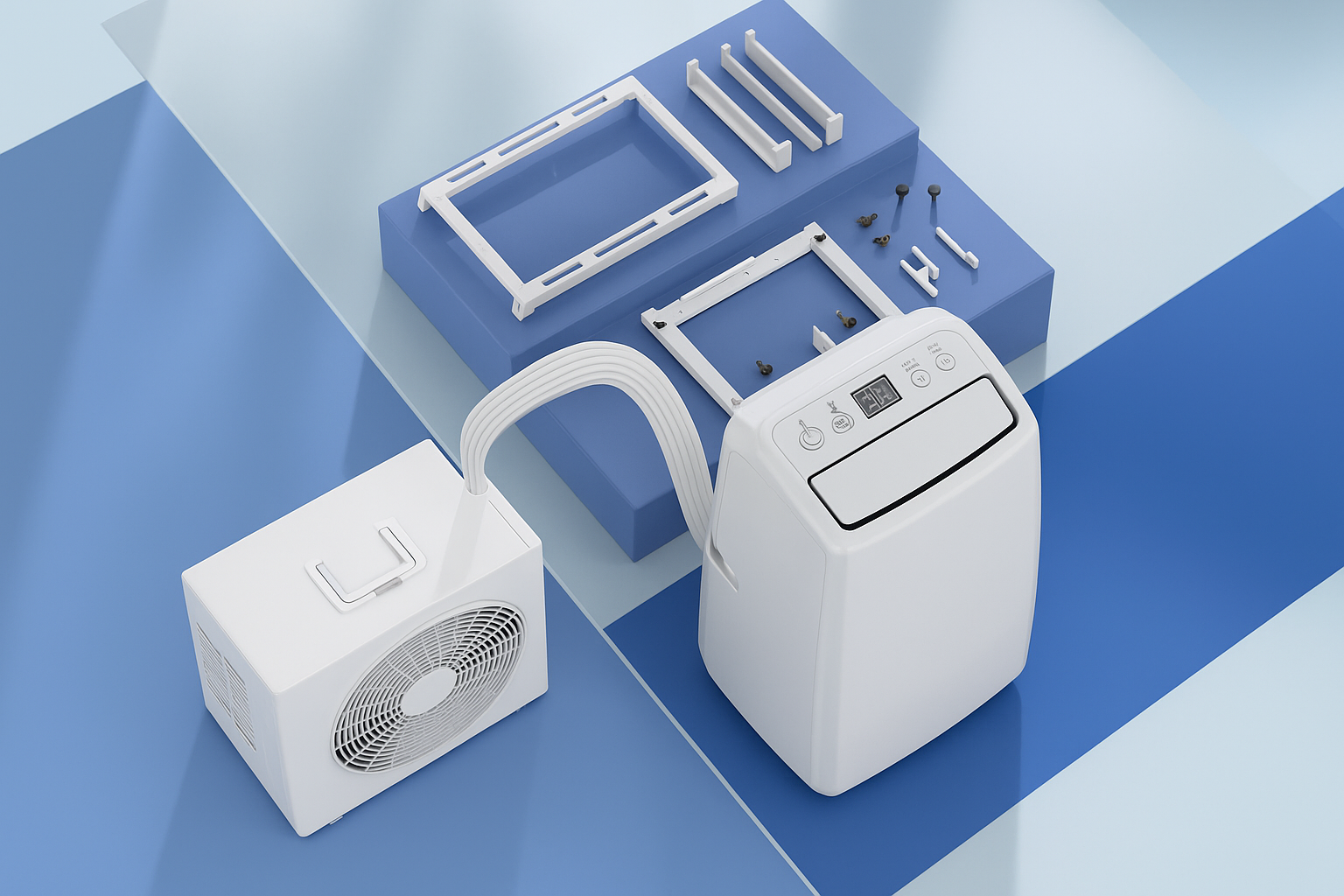 Wat de DuoClima 35 onderscheidt van traditionele mobiele airconditioners is het slimme split-systeem. In plaats van één enkele unit met een grote afvoerslang, bestaat dit systeem uit een binnen- en buitenunit die met elkaar verbonden zijn via een compacte verbindingsbuis.