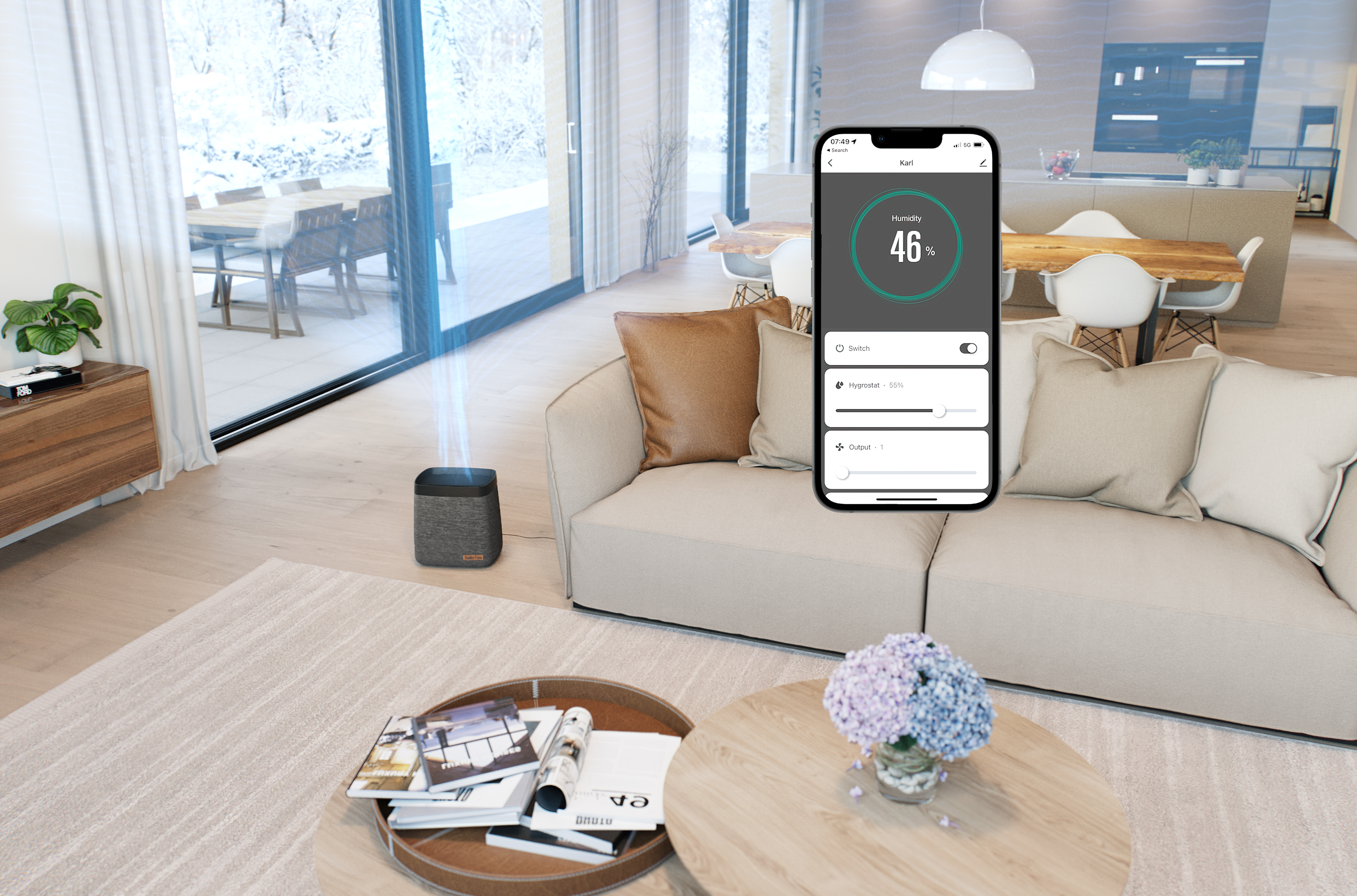 Karl – de luchtbevochtiger met power Luchtbevochtiger Stadler Form Karl behaalt snel en economisch het gewenste resultaat. In de automatische modus selecteert Karl zelfstandig het juiste bevochtigingsniveau. Hij brengt de luchtvochtigheid in korte tijd naar de gewenste waarde van 40-55%. Na het bereiken van de gezonde luchtvochtigheid controleert hij regelmatig of deze niet te ver daalt, en zal opnieuw vocht verspreiden als de lucht in huis weer te droog wordt. Karl is van bovenaf te vullen Karl is eenvoudig vanaf de bovenzijde te vullen, dit is een groot voordeel voor een luchtbevochtiger. Via een goed bereikbare klep aan de bovenzijde is vullen in een paar seconden gedaan. Het maakt de Stadler Form Karl bevochtiger gebruiksvriendelijk en hygiënisch. Uitgebreide bediening, via het display of via uw smartphone Bedien luchtbevochtiger Karl op het apparaat zelf, of stel hem in via een app op uw smartphone. Waar u ook bent, controleer zijn werking en stel de luchtvochtigheid in zodat de omstandigheden optimaal blijven terwijl u weg bent. Voor een ongestoorde nachtrust kunnen de led-functielampen van Karl worden gedimd of helemaal uitgeschakeld. De drie belangrijkste kenmerken van Stadler Form Karl Efficiënte bevochtiging met een laag stroomverbruik Van bovenaf vullen, ook tijdens bedrijf Bedienbaar via smartphone-app Stadler Form Karl eigenschappen Automatische uitschakeling Hygrostaat LED-dimmer Herinnering filterwissel Compatibel met Oskar-filterpakket Gemakkelijk navulbaar tijdens gebruik Natuurlijke bevochtiging door verdampingstechnologie, tot 690 g per uur Functiecontrole via smartphone-app Waterniveau venster Accessoires: Water Cube™, Luchtbevochtigerfilters Specificaties Bevochtigingscapaciteit: tot 690 g/uur Kamergrootte: tot 100 m² / 250 m³ Tankinhoud: 4,7 liter Vermogen: 1,4 – 30 watt, 4 standen Apparaatbediening via app