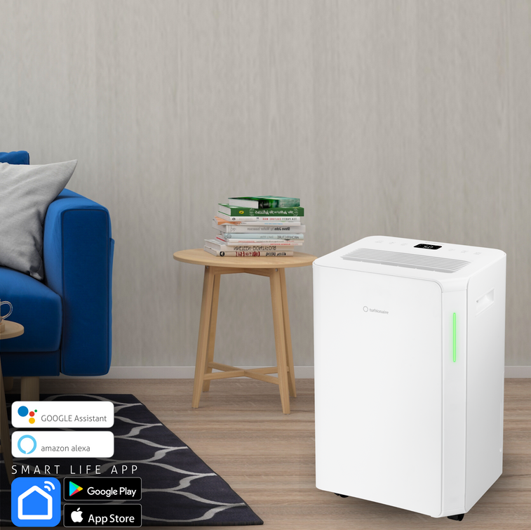 Turbionaire: slim lucht ontvochtigen Turbionaire REVI 20 WIFI ION is compact, stijlvol en eenvoudig te gebruiken, REVI 20 WIFI ION is een compacte en krachtige compressor-type luchtontvochtiger, met een WIFI-verbinding, ionisatie, 4,5 liter watertankcapaciteit, digitaal display en elektronische hygrostaat. REVI 20 WIFI ION is perfect voor elke kamer in huizen of kantoren en kan op afstand worden bediend met behulp van de smartphone-app, Smart Life (beschikbaar in Play Store en App Store) LED-vochtigheidsniveau-indicator De LED-indicator aan de voorkant, in drie kleuren, informeert u over de luchtvochtigheid in de kamer. De informatieve LED-indicator van Turbionaire REVI 20 WIFI ION heeft een gestrekte, verticale vorm. De kenmerken van Turbionaire REVI 20 WIFI ION Verwijdert tot 20 liter water per dag WIFI met Smart Life-app (compatibel met spraakassistenten van Amazon en Google) Zeer stil voor deze capaciteit, slechts 41 dB (alleen wanneer de compressor werkt) Wasbaar luchtfilter, zeer eenvoudig te verwijderen en te wassen Automatisch opnieuw opstarten na een stroomstoring Elektronische hygrostaat Waterniveau-indicator Continue afvoeroptie, handig voor intensief gebruik Multidirectionele wielen voor eenvoudig transport