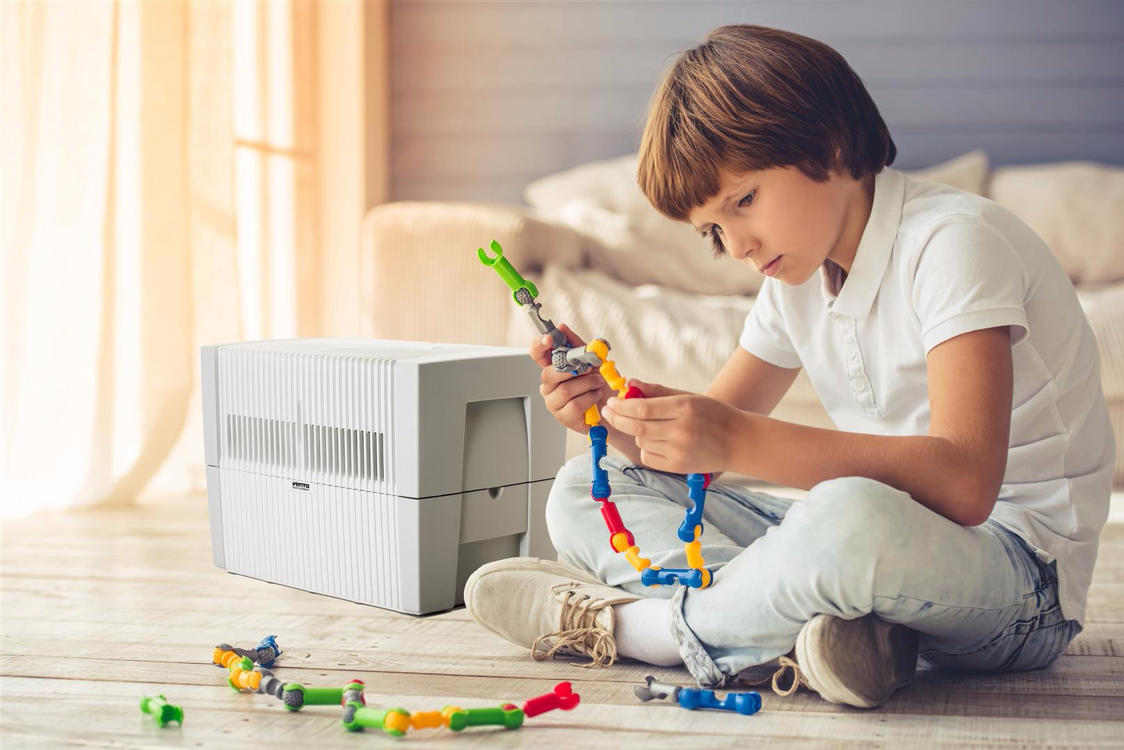 Venta LW45 Classic Original: De Slimme Weg naar Gezonde Binnenlucht Natuurlijke luchtbevochtiging voor grote ruimtes, geniaal eenvoudig. De Venta LW45 Classic Original is dé oplossing voor een gezond binnenklimaat in grotere open ruimtes tot 68 m². Dit apparaat maakt gebruik van het erkend beste principe voor luchtbevochtiging: koudeverdamping. Zonder filtermatten of kalkpatronen zorgt de LW45 voor een optimale luchtvochtigheid en vermindert hij op natuurlijke wijze schadelijke stoffen in de lucht – puur door de kracht van water. Innovatieve VentWave™ 3D-Technologie Het hart van de LW45 Classic is de nieuwe VentWave™ 3D-schijvenstapel. Geïnspireerd door de natuur, werkt dit systeem vergelijkbaar met de huidmondjes aan de onderzijde van een blad. Duizenden minuscule openingen in de schijven zorgen ervoor dat er veel meer watermoleculen tegelijkertijd verdampen dan bij een vlak oppervlak. Bovendien is deze innovatieve 3D-structuur milieuvriendelijker: er wordt tot 31% minder plastic gebruikt vergeleken met voorgaande modellen. Belangrijkste Voordelen Hygiënische Koudeverdamping: De LW45 blaast onzichtbaar vocht de kamer in. Omdat het water niet wordt gekookt of verneveld, is er geen risico op kalkneerslag (wit stof) op uw meubels en kan de lucht nooit overbevochtigd raken. Geen Filters Nodig: Bespaar geld en afval. De LW45 gebruikt kraanwater als filter. U hoeft nooit dure filters of matten te vervangen; het water vangt stof en allergenen op. Eenvoudige Bediening: Geen ingewikkelde menu's. Met één aan/uit-knop, drie vermogensstanden en een duidelijk LED-statusdisplay heeft u alles onder controle. Het apparaat schakelt automatisch uit zodra het water op is. Onderhoudsarm: Het unieke ontwerp maakt schoonmaken kinderspel. U tilt de elektrische unit en ventilator in één beweging uit de behuizing. Elke ca. 14 dagen spoelt u de waterbak en de schijvenstapel eenvoudig af – klaar is Kees. Aromatherapie Optie: Creëer uw eigen sfeer. De LW45 is geschikt voor gebruik met Venta-geuroliën, variërend van ontspannend tot vitaliserend.