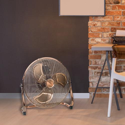 De Bestron DFA40 is verkrijgbaar als een RVS met Chroom vloerventilator of als een verchroomde Koper en RVS vloerventilator. Met een korf van 45 cm en aerodynamische ventilatorbladen voor een heerlijke, krachtige bries. De ventilator is uitgerust met een hoogwaardige koper gewikkelde motor, waardoor deze zeer robuust maar ook stil is. Verder beschikt de DFA40 over drukknoppen voor 3 snelheden. De ventilator heeft een verticaal verstelbare korf en dankzij de antislipvoetjes staat de ventilator extra stevig.