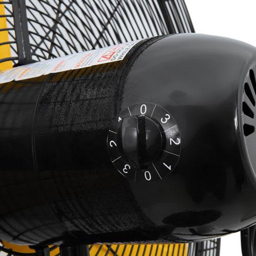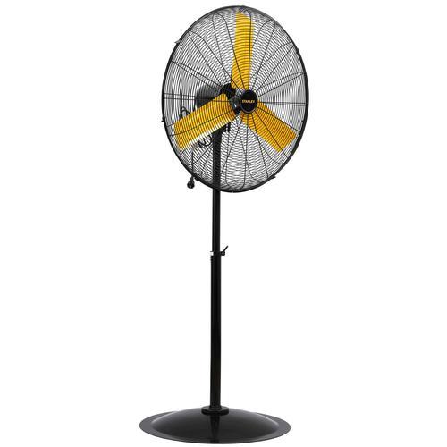 STAANDE VENTILATOR - STAAL - Ø 76 cm - KLEUR: ZWART/GEEL Specificaties: Voeding: 230 V~ 50 Hz Verbruik: 300 Watt IP-waarde: IP12 Kleur: zwarte behuizing, gele bladen Materiaal: metaal Diameter ventilator: 76 cm Geluidsniveau: 82 dB(A) Luchtstroom: 8.500 m³/h Gewicht: 22 kg Kabellengte: 3.8 meter