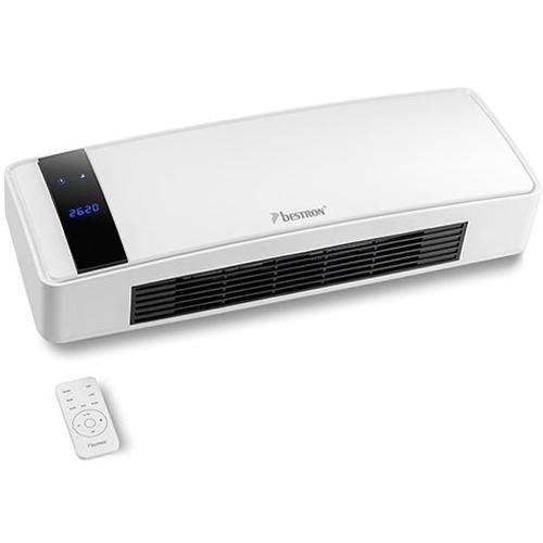 De Bestron AWH2000 met keramisch element van 2.000 Watt voor constante temperatuur en efficiënt energieverbruik. Voor wandbevestiging in ruimtes tot 25 m² (75 m³) en het montagemateriaal is inclusief. Eenvoudige bediening door meegeleverde afstandsbediening.
