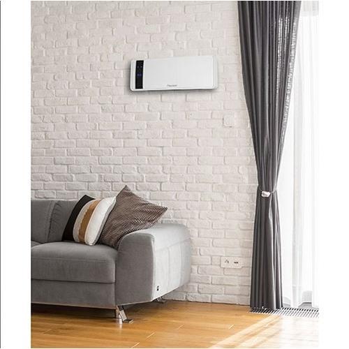 AWH2000 elektrische wandkachel met afstandsbediening Keramisch element van 2.000 Watt voor constante temperatuur en efficiënt energieverbruik Voor bevestiging aan de muur in ruimtes tot 75 m³ (incl. montage-materiaal) Eenvoudige bediening door afstandsbediening (inclusief batterij CR2025) Digitaal LED-display Instelbare temperatuur van 10° tot 49° Celsius Vier standen: Uit– Ventileren - Verwarmen – Snelverwarmen 24-uurs uitschakeltimer Programmeerbare weektimer: dagelijks instelbare inschakeling, uitschakeling en temperatuur Met oververhittingsbeveiliging Ook geschikt voor plaatsing in badkamers (IP23) Werkt geheel geruisarm en reukloos Wandmontage: Tenminste 20cm vanaf het plafond en 180cm vanaf de vloer Met GS-gecertificeerd keurmerk = extra hoge kwaliteit en veiligheidsstandaard 5 jaar garantie